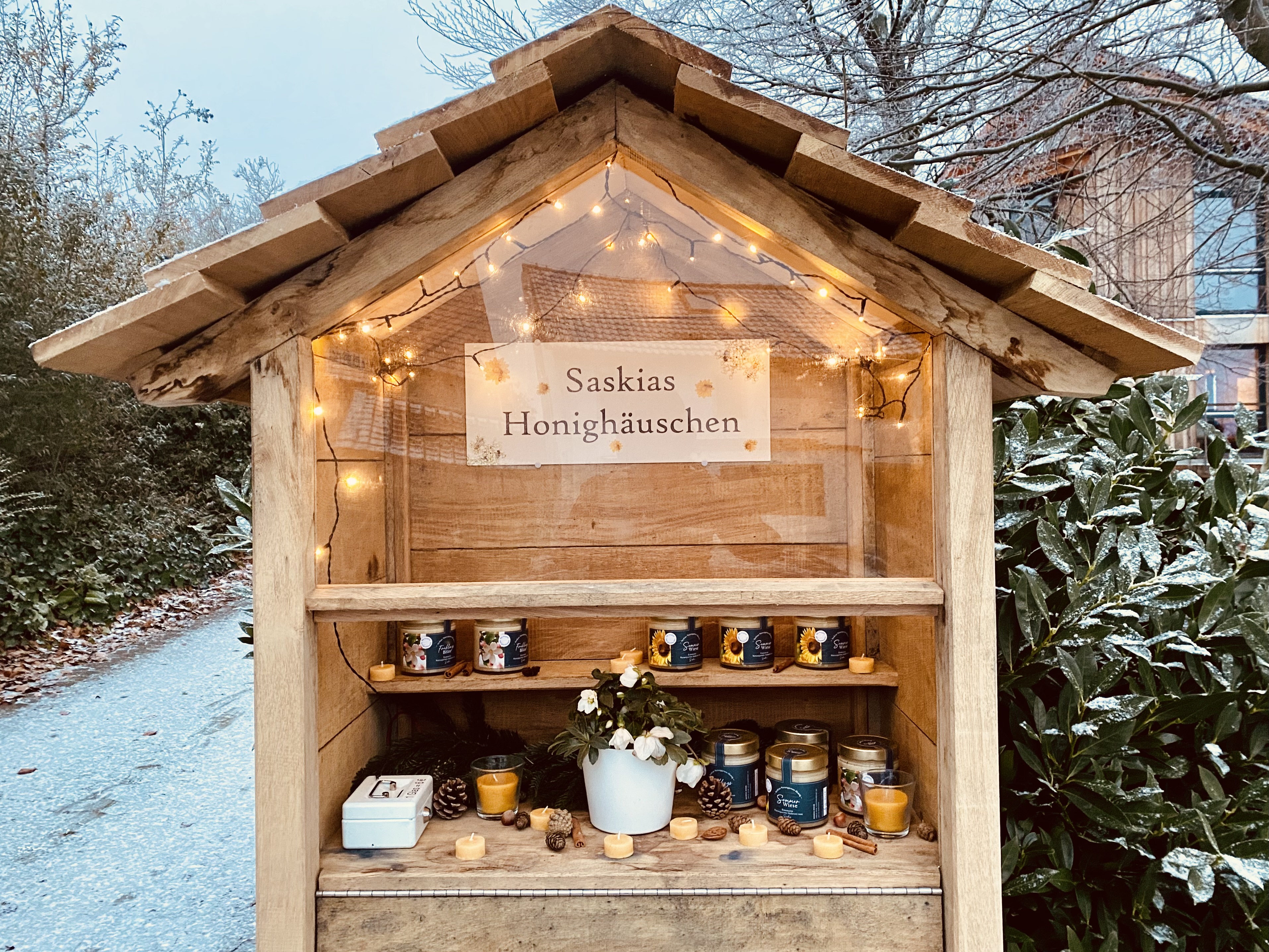 Öffnungszeiten 9-18 h, Preis 6€ pro Glas. Der Honig kommt aus extensiver Imkerei.